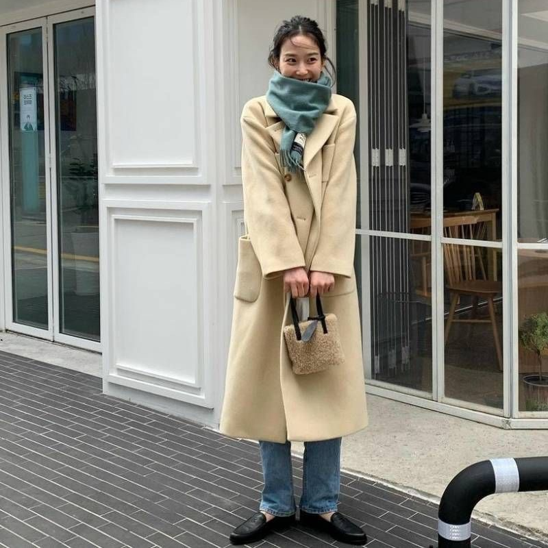 - 카멜, 브라운계열 코트 + 청바지 매치