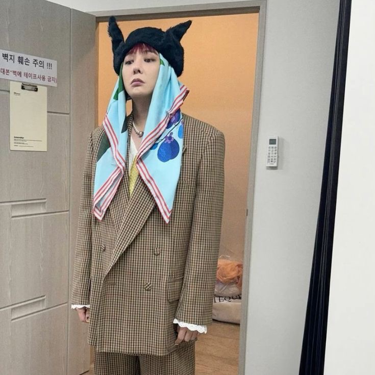 이번의 컴백 이후로 가장 많이 보여준 것 같은 아이템 중 하나가 스카프인 것 같다. 여자 연예인들 사이에서도 눈에 띈 사람이 있긴 했던 거 같은데, 남자 연예인이 스카프로 자주 코디한 모습을 본 것은 처음인 것 같음. 거의 지디는 스카프를 두건으로 쓰거나 머리 쪽을 화려하게 만들어주는 아이템으로 활용을 했다.